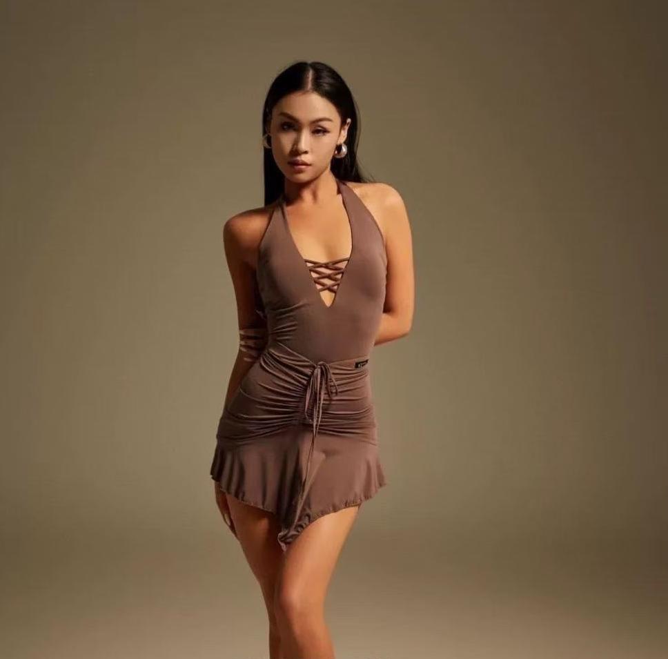 Lasciati conquistare dall’eleganza di questo abito da ballo latino, pensato per mettere in risalto la figura e accompagnare ogni passo con fluidità e stile.